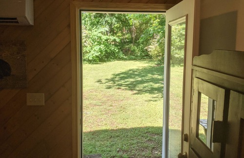 The room offers a full kitchen, a queen size bed, a fenced in yard with an outdoor seating area with firepit. The private 6 acre property is secluded in an established neighborhood just 5 miles west of downtown Salisbury.