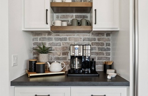 • Chef’s Kitchen: 8-burner stove, double oven, large island, coffee bar, & instant hot water dispenser