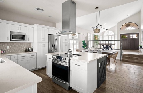 Nestled in a serene neighborhood, our elegant home offers the perfect fusion of contemporary comfort and resort-style amenities. Featuring 5 spacious bedrooms and 4 stylish bathrooms, this residence comfortably accommodates up to 16 guests. With a variety of luxurious features, including a sparkling pool, hot tub, and a range of exciting outdoor games, our home provides a delightful retreat for relaxation and fun!