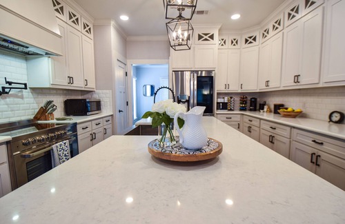 The upstairs game room has shuffleboard, connect 4 and hook & ring game. Dining room has plenty of seating for 6 with a poker set and record player for entertainment. Smart TVs in every bedroom, living room and outside poolside. Netflix and Youtube TV (live local) is available. Fast wifi for working or streaming. Bathrooms furnished with soap, conditioner and body wash. Bar and coffee bar set up complete, just bring your own alcohol. Couch is oversized and super comfy with plenty of room for an extra sleeper or you can pull out the queen sized air mattress in the game room. Wake up every morning and enjoy your coffee on the front porch swing while watching the deer roam through the yards. Extra parking is available upon request. A small, well trained, dog will be permitted under 30 lbs.