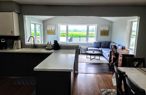 Unwind and relax after a long day of sightseeing in this kind private getaway just minutes from Frankenmuth. Watch the sun set from the back patio or relax in your own private hot tub. You can also swim in the heated inground pool (Memorial Day Thru Labor Day). You can spend time together making memories in the 2 large living spaces or recharge in your private bedroom. All the bedrooms have their own tv and fireplace. Located less than a mile from Frankenmuth and about 5 miles from Birch Run.
