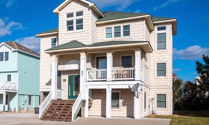 Best-rates for the Currituck County house starts from $577 per night with includes Oceanfront, Barbecue/Outdoor Cooking, Internet, Pet Friendly, View, Hot Tub, Kitchen, Bedding/Linens, Wellness Facilities, Pool, Ocean View, Security/Safety, Balcony/Terrace, Sports/Activities, Fireplace/Heating, Entertainment, Child Friendly, Laundry, Air Conditioner, Parking, TV, Private Pool with all other amenities. Perfect for Weddings is committed to ensuring every guest experiences a comfortable and extraordinary stay, whether planning a romantic getaway, a honeymoon, a pet-friendly stay, or celebrating with the entire wedding party.