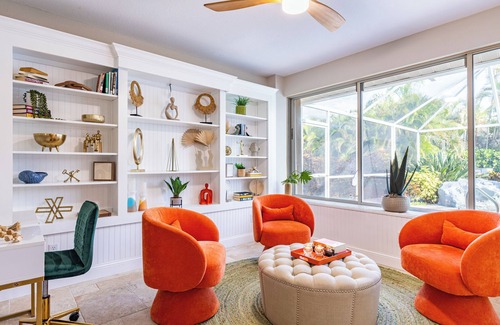 Escape to your own slice of Naples sunshine at Casa Solara, where eclectic design meets effortless comfort. This vibrant 4-bedroom retreat offers plenty of space for groups of up to 8, with colorful interiors and inviting amenities that make every stay unforgettable.