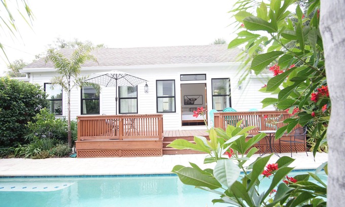 🏠 Fully renovated historic bungalow with a private pool and relaxing garden. TV in every room including bathroom + WiFi, no cable. Spa-like bathroom with a free standing soaking tub, 24 inch rain shower. Central location with close proximity to airport, Downtown business center, Florida Theater, Times Union PAC, TIAA Bank Field. You will truly enjoy our comfortable and unique place with an old house charm and modern upgrades!