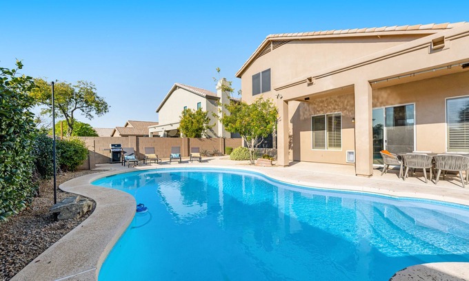 Private pool home with walled yard, firepit, grill & lanai - dog-friendly has 4 Bedrooms , 2 Bathrooms, and max occupancy of 8 people. The minimum rental for this property is 1 nights, but this can change depending on the season you plan on staying. Previous guests have given good rated it, and VRBO labeled it a top-rated House because of the excellent services rendered by the owner or manager of this House, and has consistently provided great experiences for their guests. Most families or guests that use it recommend it to their friends and some of them are repeat guests. House has a friendly neighborhood, and the Tatum Ranch has interesting places to visit. If you want to learn more about the House in Tatum Ranch, such as places to visit and things to do nearby, you can check below to learn more.