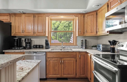 🔹Food lovers will appreciate our fully stocked kitchen w/ a large island, barstool seating, granite countertops, & stainless steel appliances