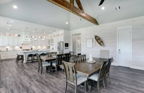 Luxury Living Spaces: Experience high ceilings and warm cedar beams in the expansive open layout that flawlessly connects the living, dining, and kitchen areas—perfect for celebrating and entertaining.