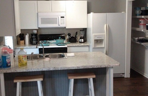 Welcome to our 4 bedroom 2 bath home. We sleep 15 in real beds with new mattresses. We have wifi, beautiful kitchen, washer, and dryer, and a ping pong table, We are a short drive to Atlanta and Six Flags. 3 miles from interstate 20, 5 minutes from all chain restaurants. There is a grocery store 3 min from the home. We are in a quiet neighbourhood. The house is on a concrete slab. (No steps in the house) There is 2 full bathrooms. (The master bath has a large garden tub)