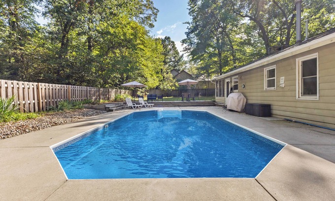 Outdoor Oasis: Pool, BBQ area, fire pit, mini basketball court.