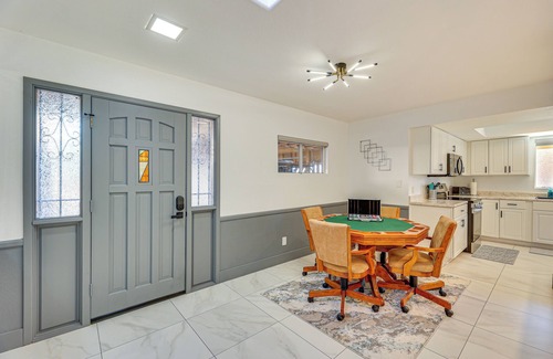 Dive into a relaxing Arizona lifestyle at this 3-bedroom, 3-bath vacation rental in Sun Lakes! With access to pools, pickleball courts, and 3 championship golf courses, this home promises an activity-filled stay under the warm desert sun. When it's time for some well-earned relaxation, enjoy drinks on the covered patio or retreat inside for a lively game of poker!