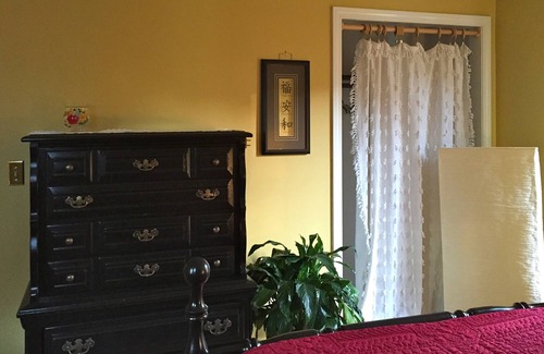 Bedroom sleeps two people with locked access with key. There is WIFI access and cable TV. Renters will have access to living room and kitchen use. I have an inground pool which is available for use in the summer. Hot tub is not available. Bedrooms have private use of main bathroom. I have my own bathroom in my bedroom. Private, non-smoking home. Great upscale neighborhood to take a walk or run. I have two cats, which spend their days outside and sleep in my room at night. For weekly and monthly rentals there will be a cleaning fee applied of $50.