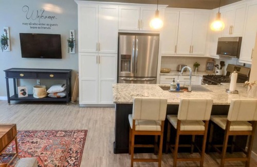Beautiful, quiet mountain neighborhood with trails and parks in Gold Canyon, AZ. We are in the foothills of the gorgeous Superstition Mountains and Dinosaur Mountain. Boyce Thompson Arboretum, hiking trails, golfing, and breathtaking mountain views are all within a short walk or drive. The Renaissance festival (Feb - Mar - Apr) is just a 15-minute drive away! Shopping & restaurants nearby just off of Signal Butte and US 60. The Casita is attached to the main home with a locked door in between. You'll have your own private gated entrance with a small side patio. There's a full living space with a TV, Wi-Fi internet, and cable. The full kitchen comes with a 5 burner gas stove, oven, refrigerator, dishwasher and microwave. The kitchen is stocked with basic cooking necessities, tableware, glassware and silverware. There's a full bathroom with a walk-in shower. The separate bedroom has a king size bed and a large walk in closet with lots of storage space and a washer and dryer. The property was just completed in 2022, so everything is brand new! Book now and enjoy your stay at our luxurious "Gem in the Desert!"