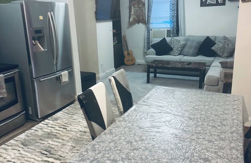 This property is almost close to everything. first floor two bedroom, Living room with open kitchen. with a full bathroom and a fenced backyards for BBQ and grill. and trampling for kids.