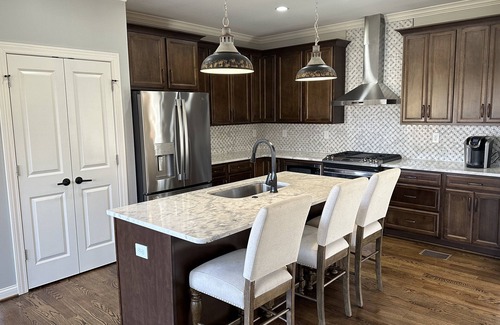 This house is an entertainer's dream! Enjoy a brand new large, luxury in ground heated saltwater pool and jacuzzi with a fully stocked pool house. This includes a full kitchen, grill, smoker, fridge, and sink with garbage disposal. Living space with TV, internet, fireplace, overhead fans, full bathroom, and full laundry room. Seating for up to 40. New home includes 4 bedrooms (2 King, 2 Queen) flat screen TVs in all rooms, large Samsung Frame TV in living room. Kitchen and dining indoor seating for 12. Kitchen is fully stocked with all appliances and gas stove. Ample parking available, plenty of rooms for sprinter vans, etc. Please feel free to contact me with any questions. Sydney