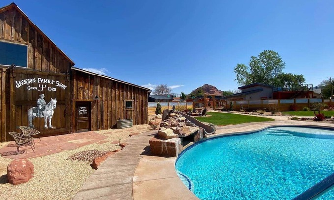 Private Resort near Zion National Park, Grand Canyon North Rim & Antelope Canyon is located in Kanab. Private Resort near Zion National Park, Grand Canyon North Rim & Antelope Canyon provides accommodation, featuring Parking, Pool, Fireplace/Heating, among other amenities. This House features Parking, Pool, Fireplace/Heating, to make your stay a comfortable one.