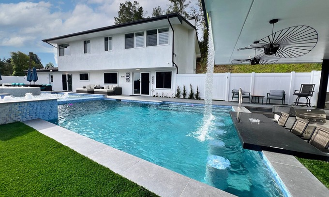 Private Resort-Style Escape w/Heated Pool & Spa! is located in Woodland Hills. Private Resort-Style Escape w/Heated Pool & Spa! provides accommodation, featuring Air Conditioner, Parking, Designated Smoking Area, among other amenities. This House features Air Conditioner, Parking, Designated Smoking Area, to make your stay a comfortable one.