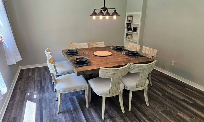 Enjoy meals together in the amazing dinning area. The dining room is very large, with an 8-person chopping block style table.
