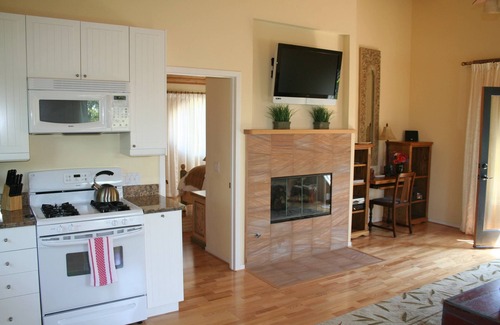 Luxurious bedding, and now with a King bed, full kitchen, personal washer/dryer, wireless Internet, gas fireplace. The large new Smart HD 4k TV is equipped with cable TV and use internet to access your streaming apps. On top of this you have your own personal yard and patio with personal Hot Springs jacuzzi to truly unwind and make this the most relaxing time of your life!