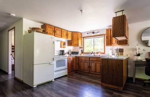 Welcome to Raven's River Rest; enjoy your stay in a private house at a prime location on riverfront property at the Somass River. The Somass has one of the most extensive Salmon runs from May to October. Bring your fishing rod. There's an outdoor fire pit for those cozy nights around the fire. Families and your fur babies are welcome! We also live on the property adjacent to the guesthouse. Therefore, we kindly request that your pets be socialized and comfortable around other dogs. There is ample parking: free WIFI, a full kitchen, a king-size bed, and bunk beds with double and single beds on top.