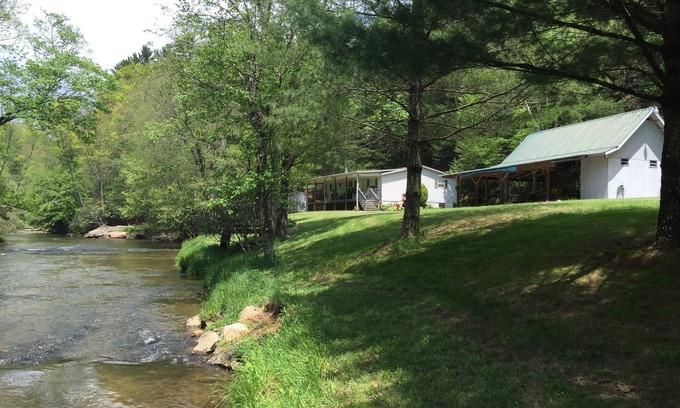 Secluded home nestled among 2500 feet of trout stream, river frontage, hiking, fishing, floating, all on a private 70 acre Farm just south of Sparta, NC. Welcome to our cozy 3 bedroom, 2 bath home with a full front porch view overlooking the Little River. Relax to the sound of rolling water and quiet surroundings of beautiful forest. Cast a line from the bank, dock, or wade the river for rainbow, brook, and brown trout. Also, hike, bike, mountain bike, canoe, kayak, or tube the river for an all-out adventure retreat! you have the best of land or water. Never be out of contact, as we have High-Speed Fiber internet and whole house wifi. This home is adjacent to a custom-built pavilion with an incredible outdoor rock fireplace, kitchen, and half bath. Add this option to your stay to have an incredible family experience, cookout, and get-together for the whole crowd. Enjoy covered seating for 30+ guests with picnic tables, lounge chairs, and gas grill. Make this your getaway for making memories. Only minutes from the Beautiful Blue Ridge Parkway and 4 miles from downtown Sparta, NC. Fill your stay with local artisans, music, boutiques, and a local flavor of restaurants. If you want more, tape into golf, hiking, biking, and canoeing that are all within a few minutes drive. #StoneMountainState Park, #NewRiverStatePark, #BlueridgeParkway. Welcome to our secret treasure, I'm sure you will enjoy!