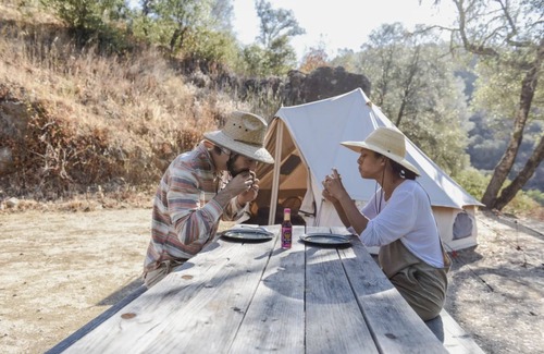 A 13 ft Bell tent is setup for you with 4 single beds inside (beds are made with sheets & comforters). The tent sits approximately 75 ft above the river with breathtaking views of the river and canyon. If you are coming with a group, there is over an acre of flat land which is perfect for any type of tent setup.