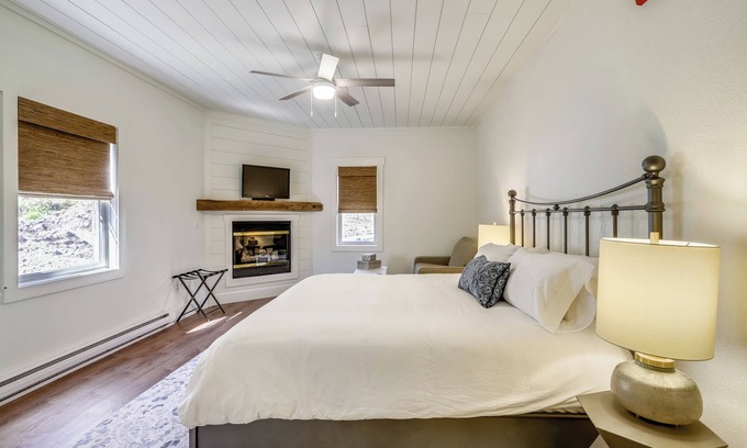 After many years of happy use, the 10 bedroom inn was renovated from top to bottom this year and every room was professionally decorated in the modern farmhouse style. Love shiplap? It is EVERYWHERE! All 10 bedrooms feature king size beds, private bathrooms, gas fireplaces with barn beam mantles, and cable television. They were designed for a comfortable and calm experience and each and every one is different.