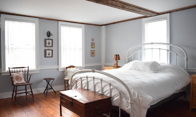Deans Mill Farm, once a functioning livestock farm, is now home to a beautifully renovated 5-bedroom bed and breakfast and shares the property with Dragonfly Equestrian Center and Dragonfly Disc Golf. This 78 acre property is just minutes from I-95 and down the road from downtown Mystic. With hiking and meadows, this is for sure an experience you won't want to miss. Provide host with your ETA for check-in.
