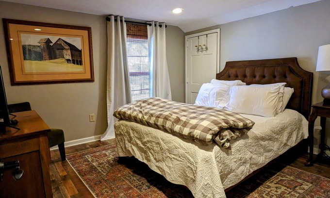 Private room with a queen bed at The Town House Inn | Hotel in Buena Vista