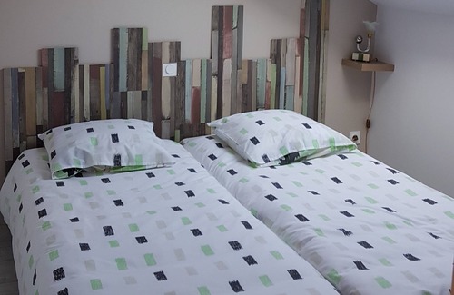 The two bedrooms are recent and tastefully furnished in the attic. They are functional, pleasant and independent of our house. They have real comfort. Five beds in total, bathroom, WC.