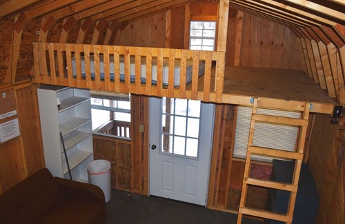 The cabins are fully furnished with beds, chairs, table, and other necessary furnishings, and our guests supply their own pillows, blankets, sheets, towels, pots, pans, plates and tableware. There are bunk beds and a queen bed on the main floor, a queen mattress in one loft and two twin mattresses in the other loft. There is a private portapotty by the cabin, a showerhouse near the main lodge house, as well as sources of potable drinking water.