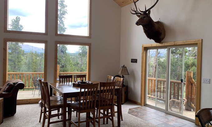 Discover the enchanting Private Rustic Mountain Cabin with Million-dollar views of the Mountains!, a breathtaking escape that offers the ideal backdrop for your dream wedding. Nestled amidst the stunning scenery of Fairplay, Colorado, this charming cabin immerses you in nature's beauty while providing all the comforts needed for a memorable celebration. With expansive floor-to-ceiling windows and a wrap-around outdoor patio, your special day will be graced by picturesque views and a serene atmosphere that your guests will cherish forever.