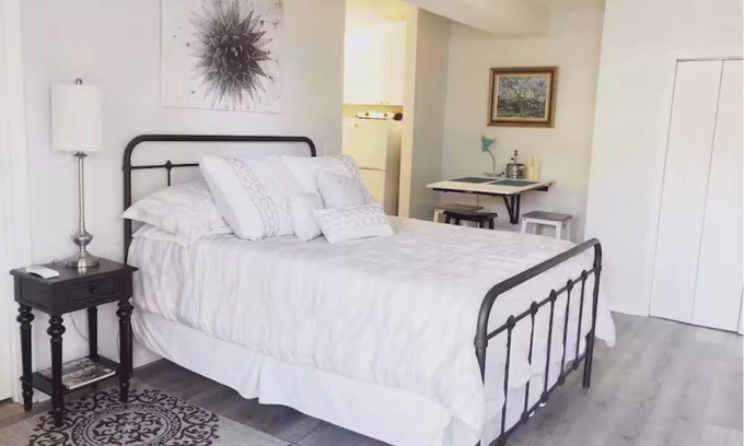Serene, nicely appointed and a welcome refuge after a long date with nature or a night out on the town. The condo-like living quarters features new flooring, Queen Bed, Kitchenette, Table with Seating, Closet, Additional Seating Area & a well-equipped Bath (Shower, Sink w. Vanity & Toilet). AC & Heat provided by a spilt unit. Overhead Fan & Air Circulation Tower also provided for additional comfort. Guests are generally self-sufficient although help is available via text if needed.