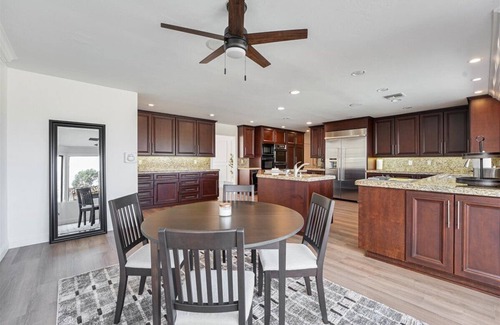 - Fully equipped kitchen featuring an island, breakfast nook, and appliances