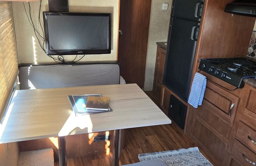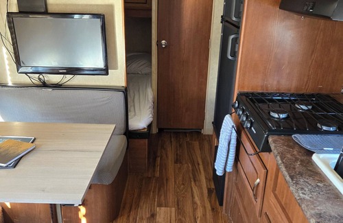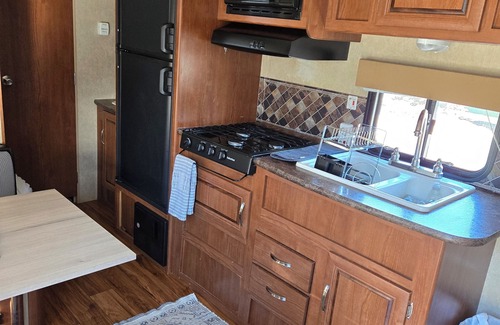 Welcome to this charming recreational vehicle in East Wenatchee this charming RV sits behind the main house facing the orchard, it sits on a half acer with lovely views and ample room for kids or pets to run around. This brilliant property offers a cozy bedroom with 1 queen bed, 1 bunk bed, and 1 sofa bed. With heating and AC, guests can relax in comfort. The bathroom is equipped for all your needs. Plenty of parking available. This location is very private and only minutes away from shopping and recreational parks. We hope you'll enjoy your stay at our Happy Glamper. Some Knowledge of Rv encouraged but not required.