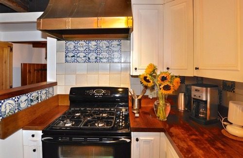 The ground floor offers two separate living rooms, each with a fireplace/wood-burning stove. The larger sitting room has a open wood-burning fireplace, 2 long couches for napping, and plenty of windows to let in the light. The second cozy TV room has a large flat-screen TV and seating for watching whatever catches your interest on Netflix, or Apple TV.