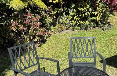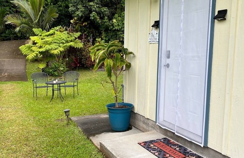Private and separate from the main house, guest studio in lovely Hakalau village community. This is an adorable and private room at the back of our detached garage. Easy access and parking, comfortable queen bed, desk space, private bath, spacious shower, HD Smart TV, cable, high speed WiFi and kitchenette. Lush landscaping and bistro garden area.