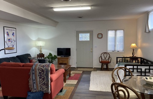 Private and quiet, open-plan living space with private entrance, dedicated work space, relaxing area with cable t.v. and fast speed wireless internet, kitchenette, full bath, easy access to washer and dryer, swim spa, fenced yard for pets. Sunny and bright with blackout curtains just perfect for a good night’s sleep. Property is located on 7 acres, a mini-walking trail through the hayfield, beautiful country road for dog-walking, running, cycling, night sky perfect for stargazing. 2 minutes to interstate and Rt. 11.