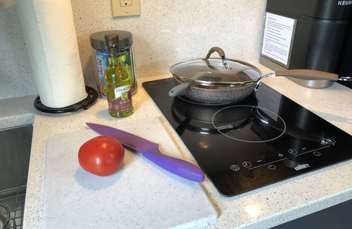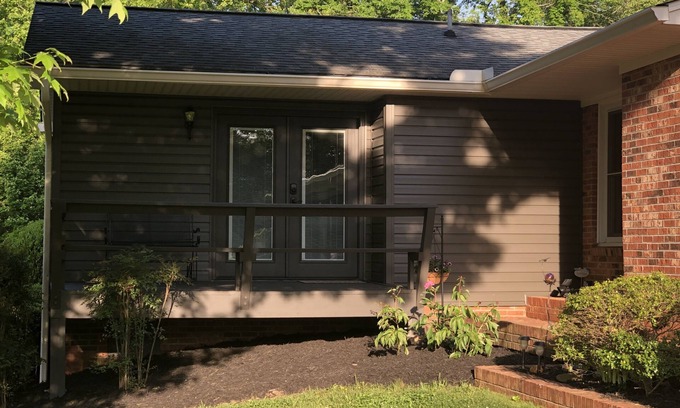 Newly remodeled (as of May 1, 2021) studio apartment with deck and clear view to Western Carolina University campus. Ideal for parents and visitors with just a few minutes walk to the center of campus, sports facilities, or nearby off-campus apartment complexes. Features a nicely apportioned kitchenette with fridge/freezer, glasstop cook stove, combination convection/microwave oven, coffee maker. 43" smart tv, queen bed, and pull-out sofa. Covered parking for motorcycles. Fast, reliable wifi; excellent cell reception. Hosts on site.
