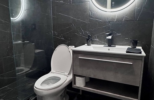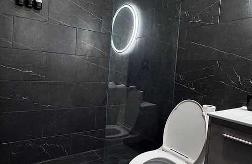 Bathroom comes equipped with hair dryer, toilet paper, shampoo, conditioner, and body wash. Towels will be found freshly washed on top of the bed based on # of registered guests.