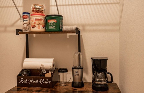 -Microwave, small conventional oven, coffee maker, and Ninja smoothie blender