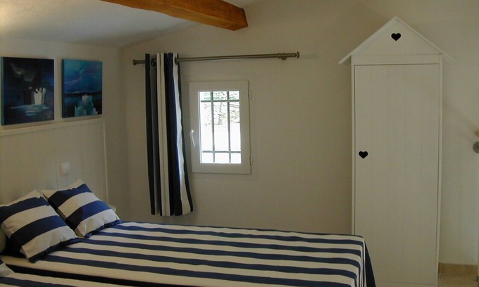 Real haven of peace,. This studio is part of the villa which is composed of three other independent apartments. This charming house located in the heart of Provence, between sea and mountains offers a personalized welcome by the owners. Private pool heated from May 1 to September 30 - Pool-house - outdoor lounge - pergola - summer lounge - terrace - private garden - park with olive trees, oaks and pines - Plancha - private and fenced parking, electric gate - free WIFI connection - washing machine - satellite TV - heating / air conditioning - Ping-Pong - boules pitch. From June 1st to September 30th the villa is rented alone to the same family of 4 or 6 or 8 holidaymakers. The rest of the year possibility to accommodate either 2 or 4 or 6 people in the large apartment, or mezzanine studio or the apartment on the 1st floor, see terms with the owner. Three fully equipped kitchens; four rooms for two people; cots (on request free of charge) three showers; 1 bathroom; separate toilet. Quiet location, no neighborhood nearby. Clear view of the Esterel mountains.