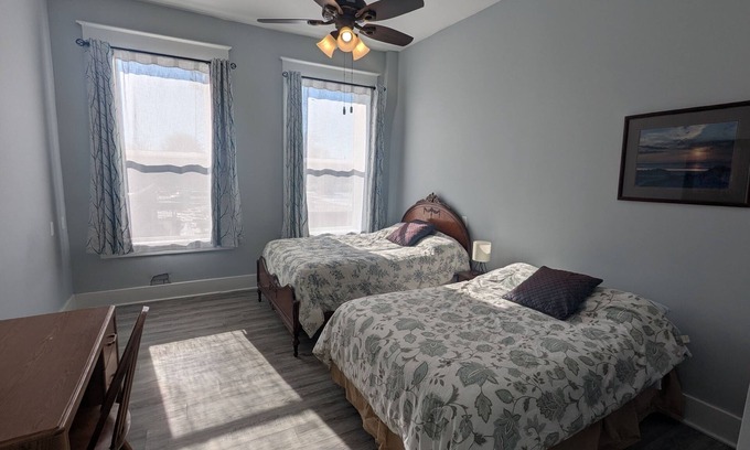 Located one mile from Marathon and Hershey, this newly updated private studio apartment offers a two full-size beds perfect for 2-4 guests, as well as a desk and chair for remote work. Available down the hall are the communal bathroom and kitchen, shared among other apartments in this building. Free washer/dryer and free internet. This apartment is centrally located in a historic building on the town square, on the second floor, above commercial and retail businesses.
