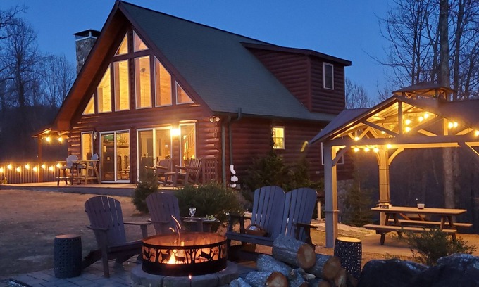 This 3-level log cabin is a beautifully appointed, nestled on a mountain ridge top and surrounded by lush and peaceful forest, making it perfect for relaxation, spending quality time with your loved ones, and enjoying nature. Every room in this cabin gives you a spectacular view of the mountains or the forest. We have a fire pit to enjoy with front row seats to a fantastic mountain view. A charcoal grill and plenty of outdoor furniture is available. WIFI is throughout the entire cabin. Satellite programming is also provided.