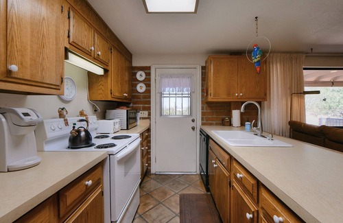 Welcome! Bright, charming detached guest house with a private entrance, parking, and patio. The home features exposed brick walls, lots of natural light, authentic Saltillo tile, wood floors, and tasteful southwestern furnishings and décor. It comes with all the amenities to make your stay comfortable, including a full kitchen and laundry. Beautiful views of the Tucson mountains where you can unwind on a private patio and watch the breathtaking sunsets. Close to many restaurants and shopping plazas.