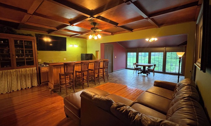 Discover your private tavern with coppertop bar inside this tranquil 3-bedroom gem in Worcester with 2 queen beds and 1 full bed. 25-28min from Dreams Park and All-Star Village, 20min from Oneonta, 20min from Cobleskill, 25min from Ommegang Brewery. Picnic table and grill as well as a 3min walk to the town pool from late June through August.