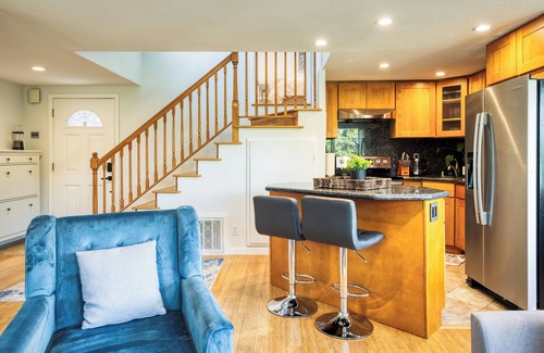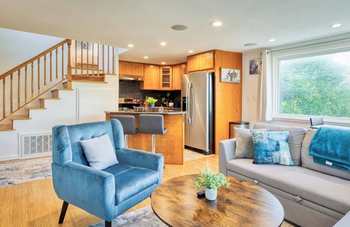 Unwind with Roku-equipped TVs in both the living room and bedroom, offering entertainment at your fingertips along with various board games to play. The sectional sofa in the living room easily converts into a sofa bed for added flexibility in accommodating guests. Our kitchen is stocked with all the essentials, making cooking a breeze.