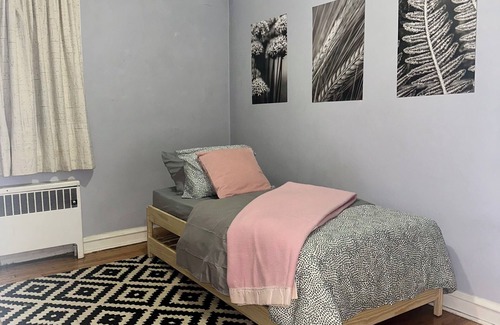 Private, second floor, two bedroom apt. One bedroom had a queen size bed while the other bedroom has 2 twin beds “stackers”. Hardwood floors throughout including two air conditioners. This apartment is close to cottman ave which has plenty of shops and restaurants walking distance.