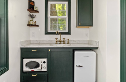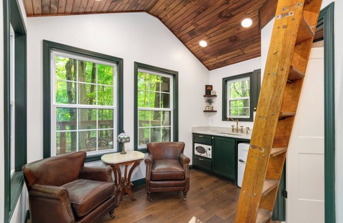 The Hickory treehouse offers privacy in nature while also providing a luxury stay. Two bedrooms are available uniquely designed for your stay. Each bedroom has a queen sized bed and roku tv. There is a full bathroom with a tile shower. The kitchenette has a mini fridge, air fryer toaster oven and coffee maker for guest use. WiFi is available for streaming. Enjoy the outdoor space as well with a walk around deck, balcony, nature trail and private fire pit.