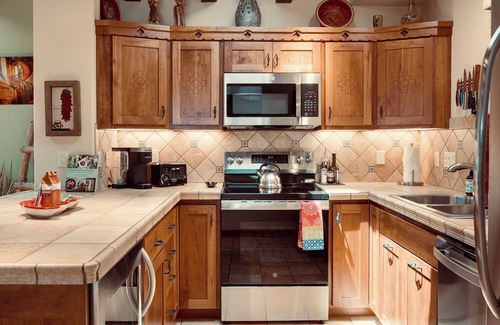 "Experience comfort and stunning mountain views in this spacious 2-bedroom, 2-bathroom casita, accommodating up to 4 guests at Pueblo Encantado. Boasting the larger of the two available floor plans, this casita has been thoughtfully reimagined and remodeled, featuring enlarged baths for a luxurious stay. Enjoy special discounts for extended stays, with rates varying by season. The last photo in our gallery showcases the new floor plan layout."