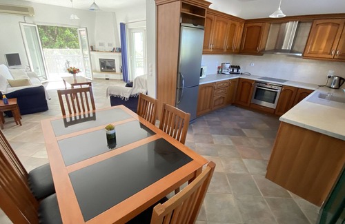 Entire private villa to rent comprising two separate apartments (ground floor and first floor) with private pool, WiFi, ample parking and stunning views of the mountainous coast of Turkey. Perfect for couples and families and a minute’s walk to one of the most desirable sandy beaches on the island. With a local minimart and several tavernas on your doorstep, you will have all you need for the perfect holiday.